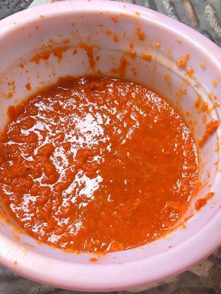 - Ajouter 1/2 tasse d’huile de palme extrait de la surface de la sauce dans sakasaka