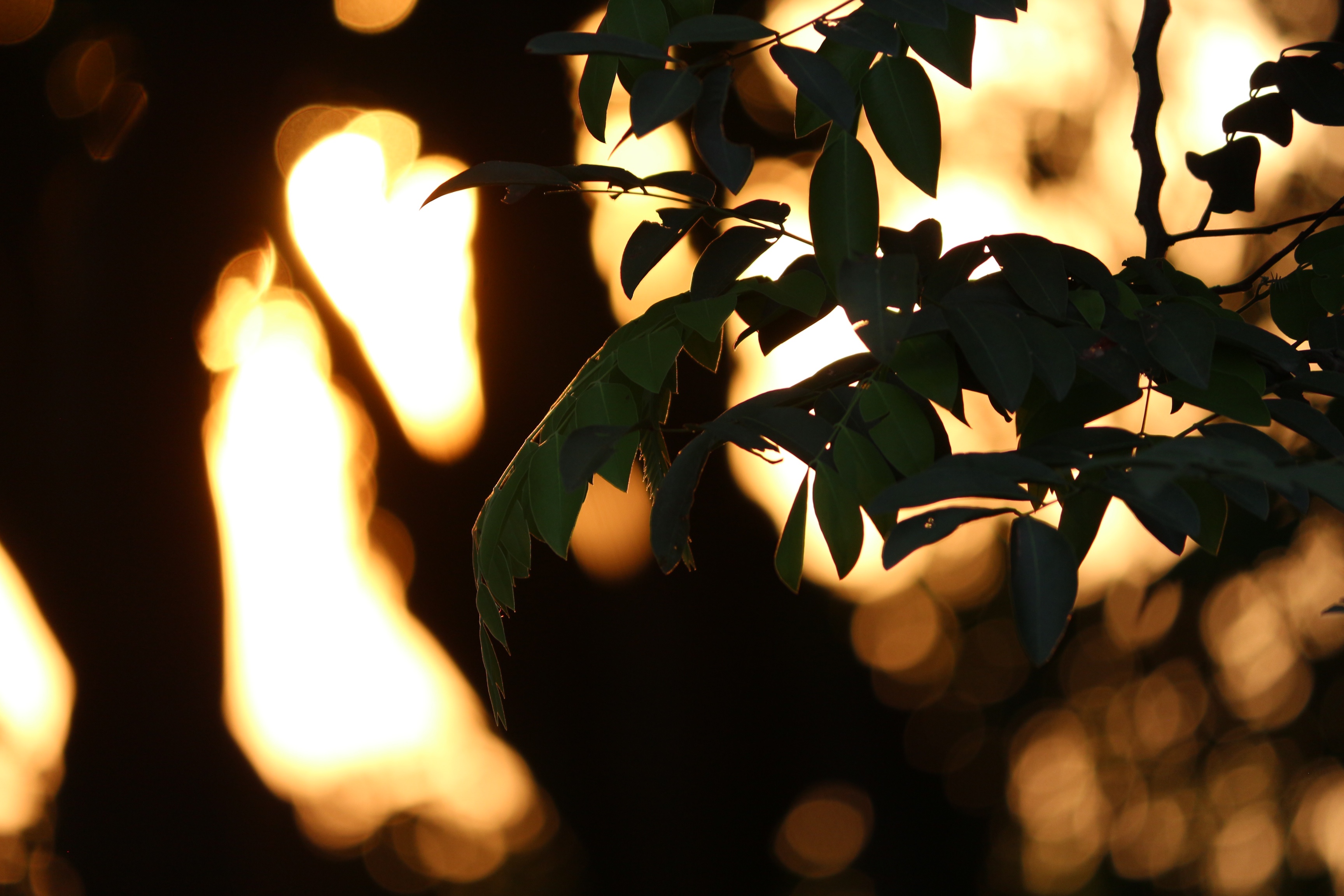 Out of focus leaves at sunset