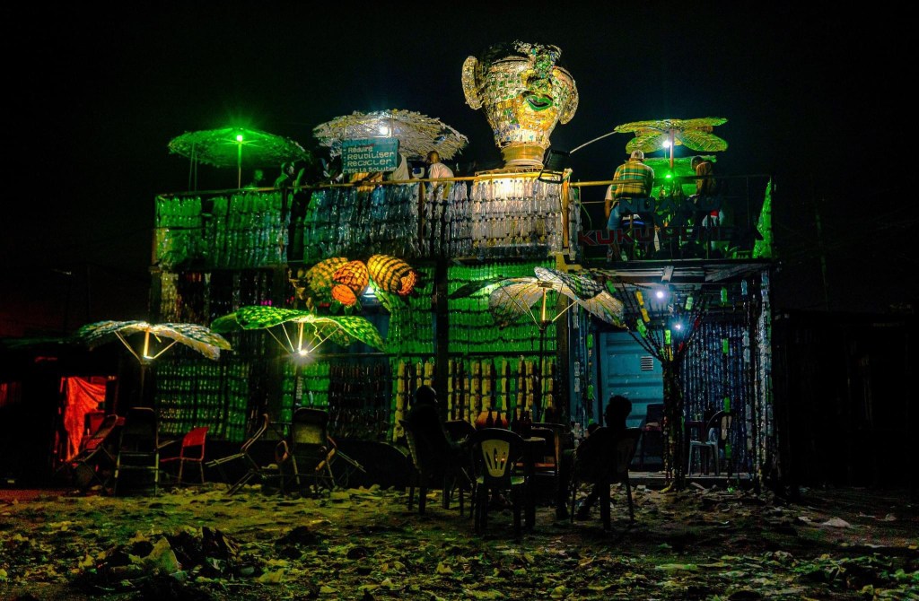 - Kuku Pemba in Ndjili. The name comes from local folklore I believe. She or he was a god from Bandundu. The bar is made of recycled material and aims to remind the patrons to reduce and recycle their waste. I have not been yet but I’ve heard great things. They also have art work made from waste. It was opened earlier this year by Roland Verbiest, a Dutch business man and Congolese folklore story teller. Google Maps location. This place is behind the Marché de la Liberté on the way to the airport. It is part of a huge sprawling township or “cité”. It is close to the main road. Try to go in the day but maybe it’s also ok at night. I’m told there is safe parking but I have not been yet!